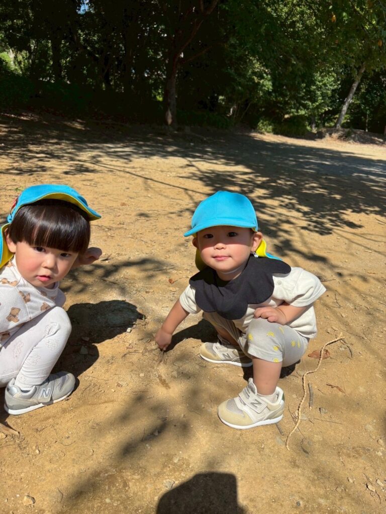 どんぐりを拾ったり好きなものをたくさんバッグに入れて外遊びを楽しみました✨