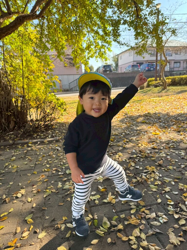 落ち葉がふわっと舞い上がりとても嬉しそうな様子でした🥰