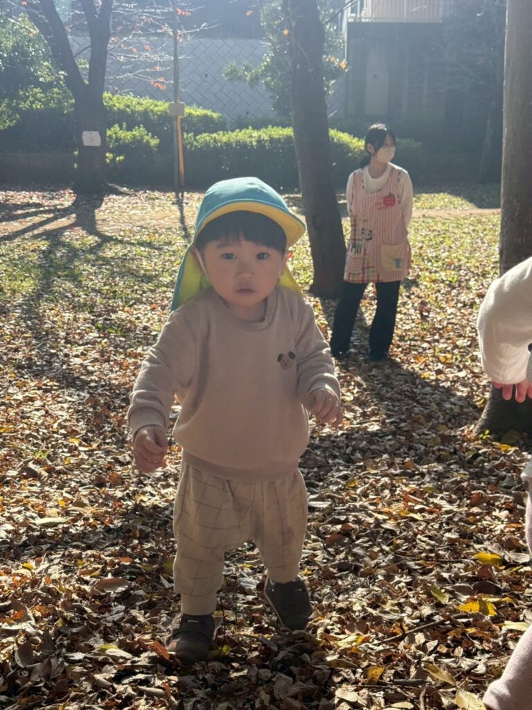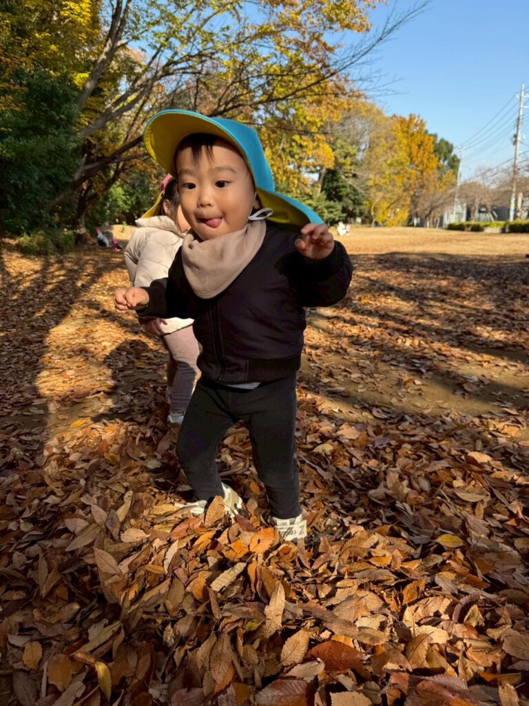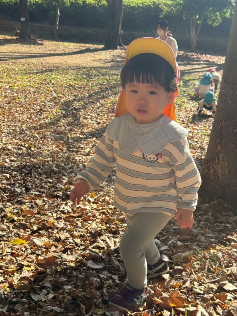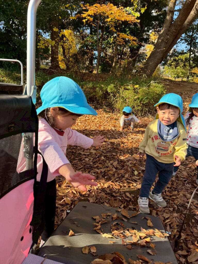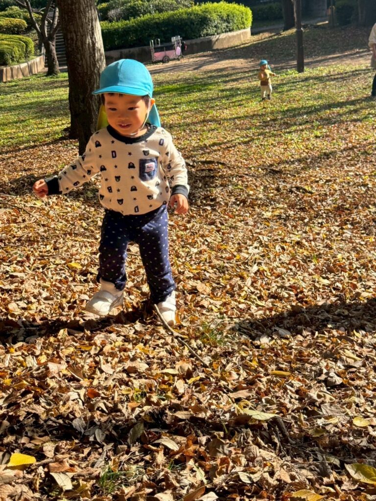 公園にいくとたくさんの落ち葉が一面に広がり、みんなで落ち葉遊びをしました☺️