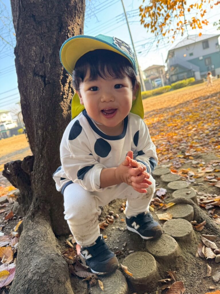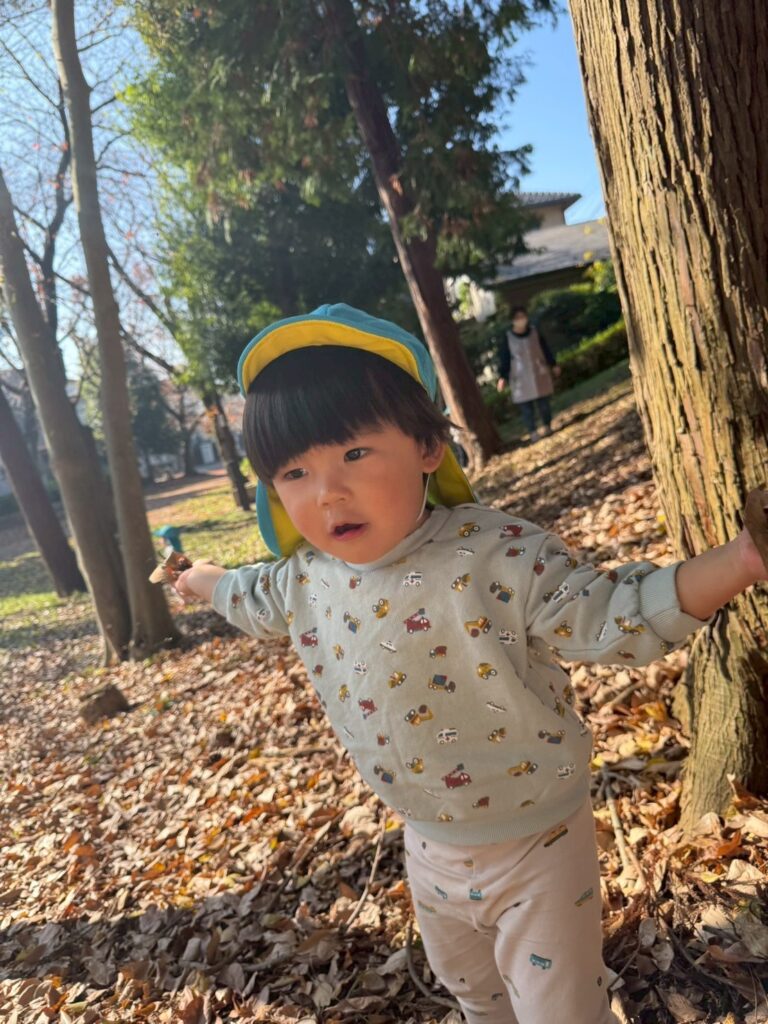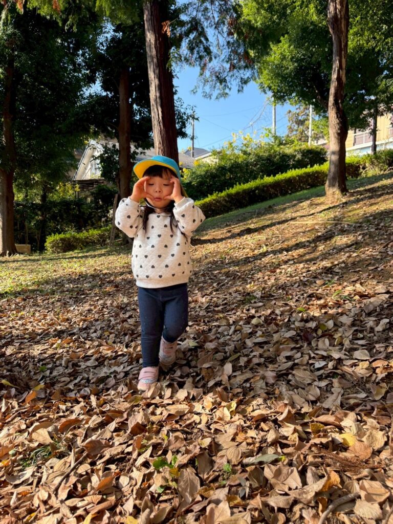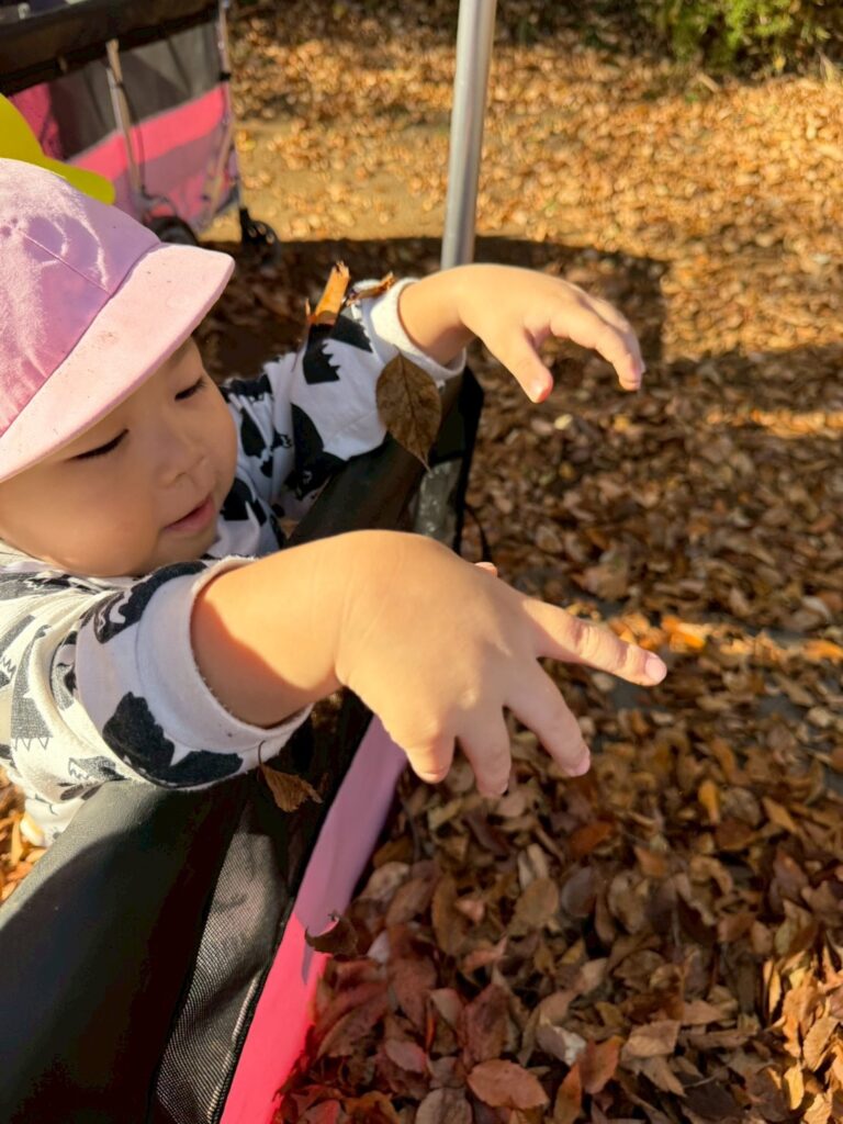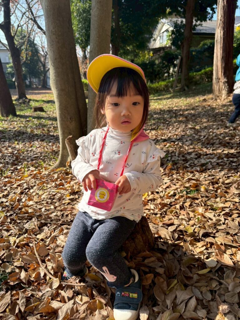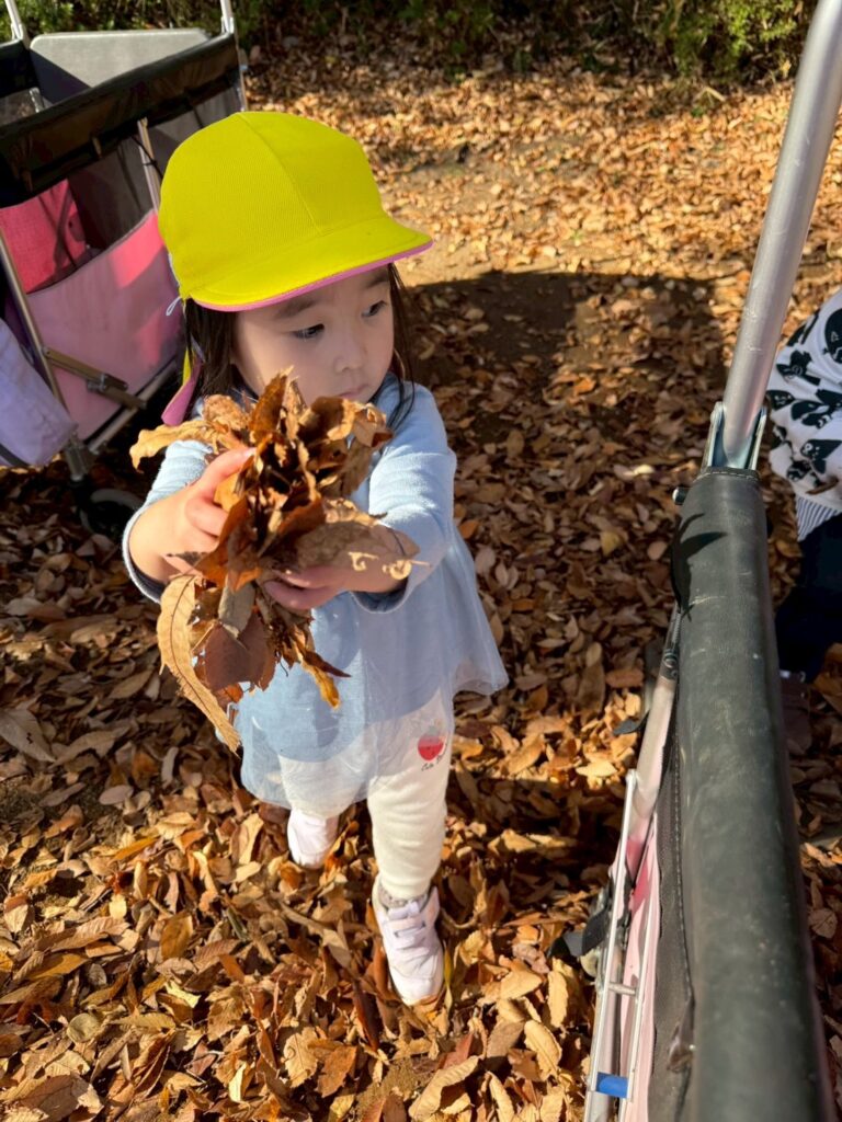 公園にいくとたくさんの落ち葉が一面に広がり、みんなで落ち葉遊びをしました☺️