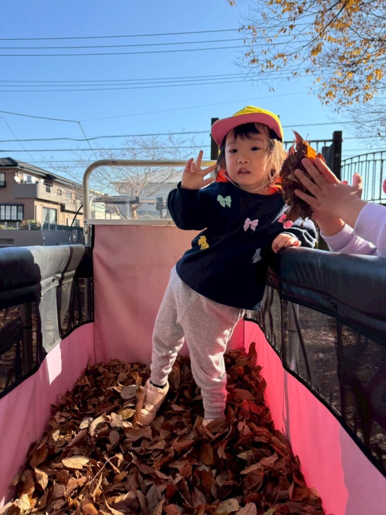 カートにたくさん入れて落ち葉のベッドを作ったりとても楽しそうな様子でした🌟