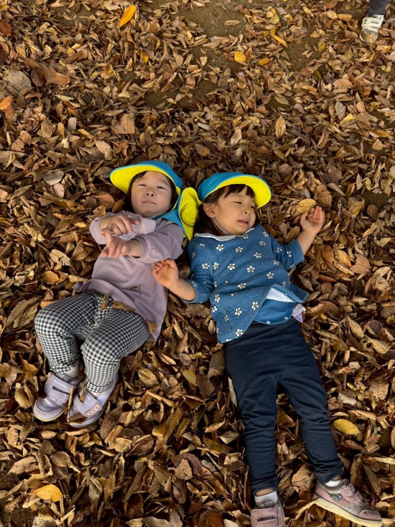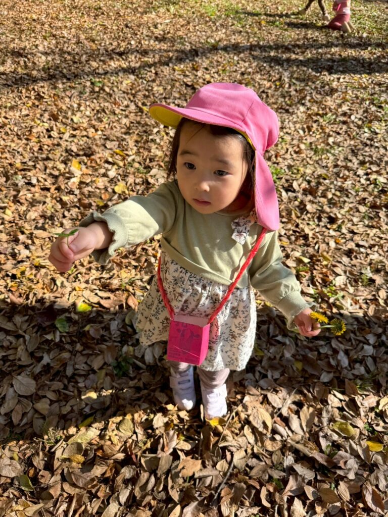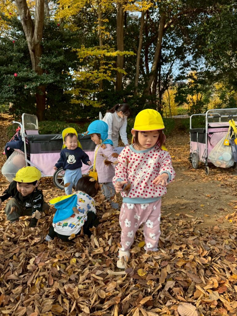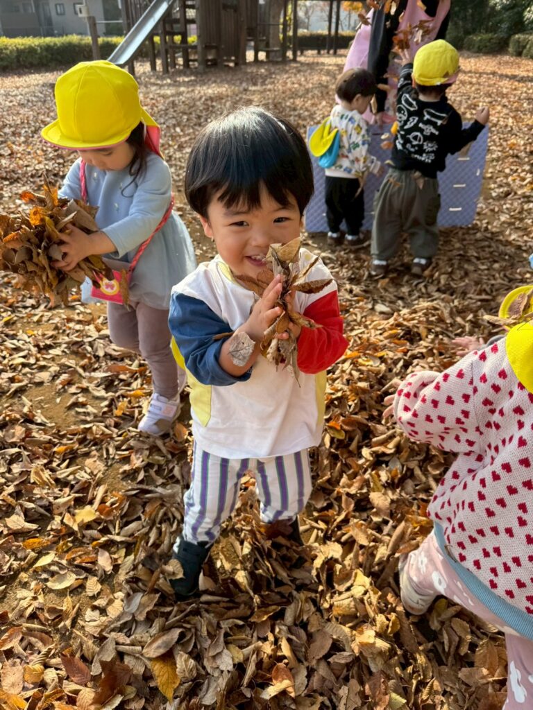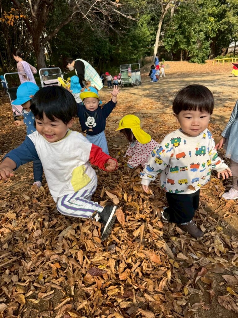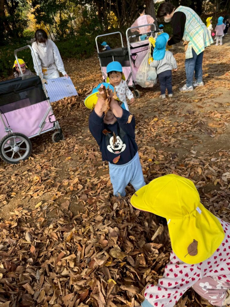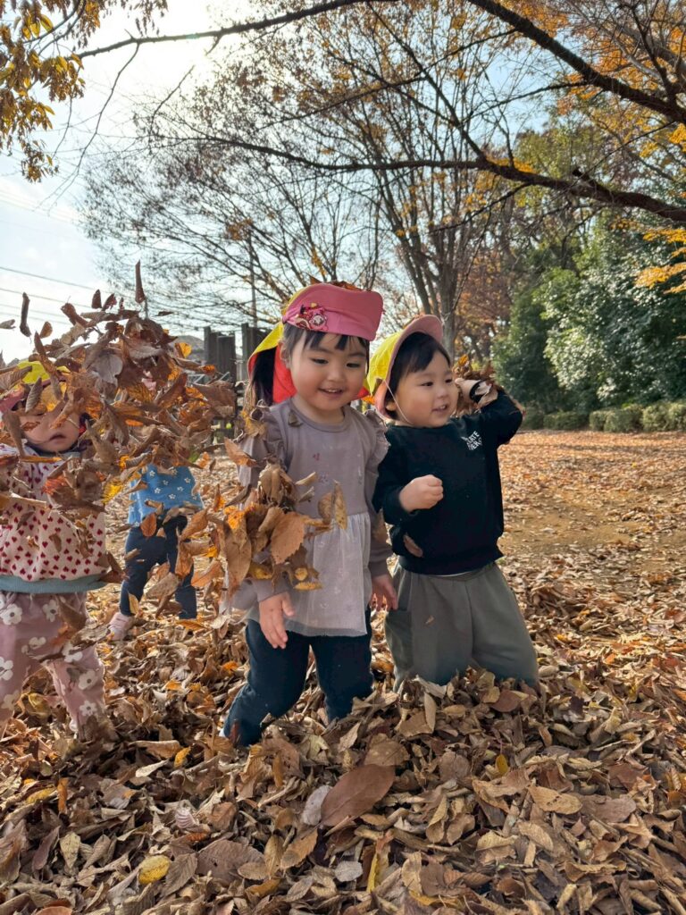 落ち葉を降る様子を見て、友だちと笑い合う姿も見られましたよ🍂