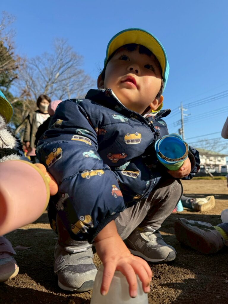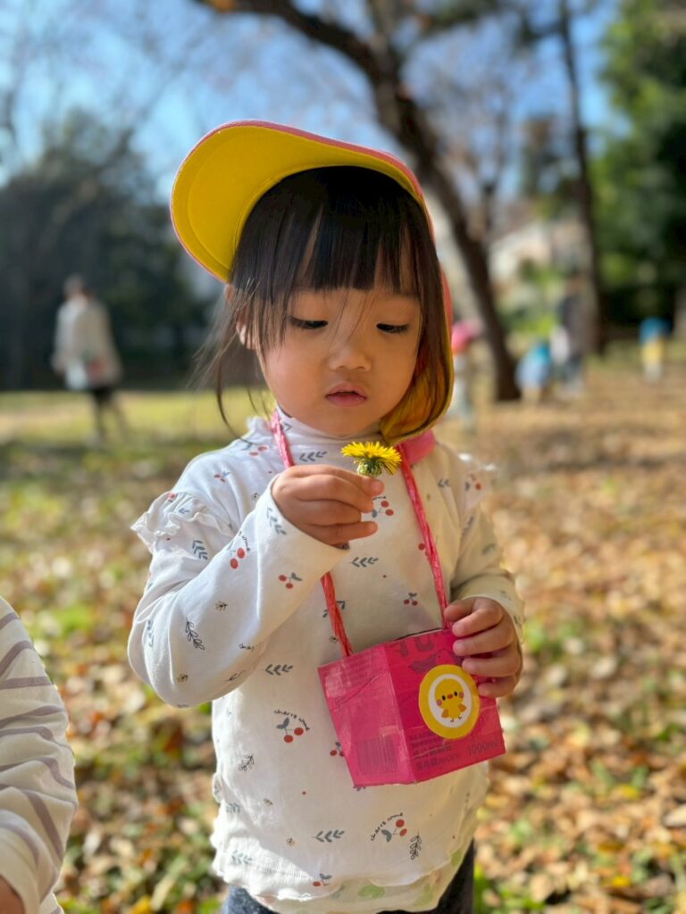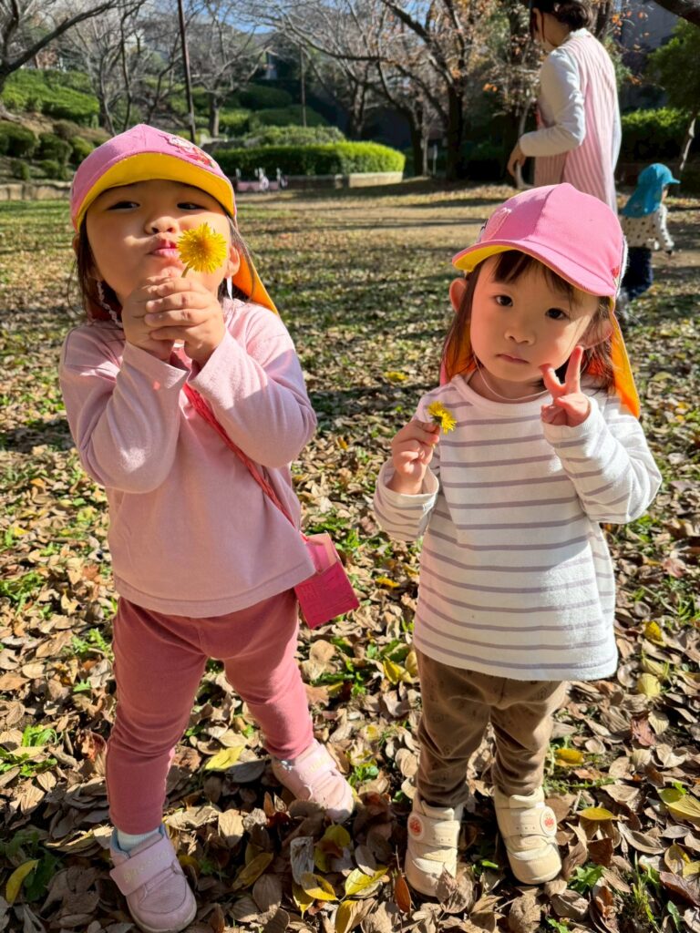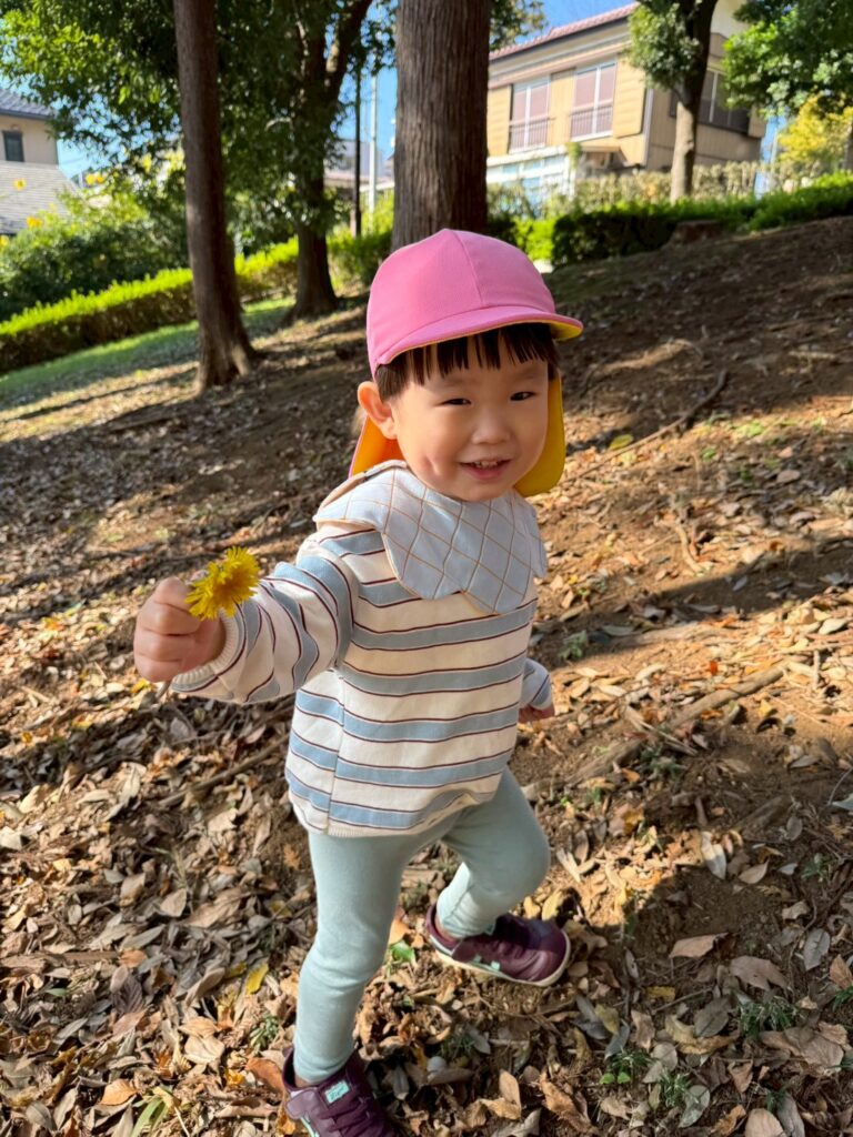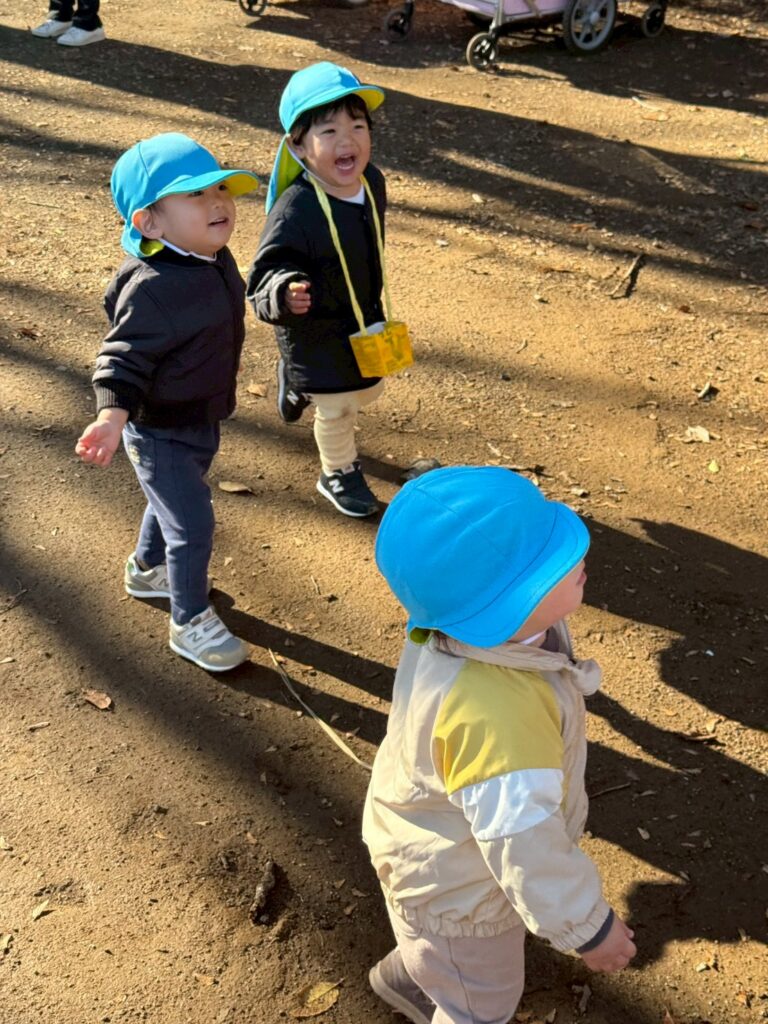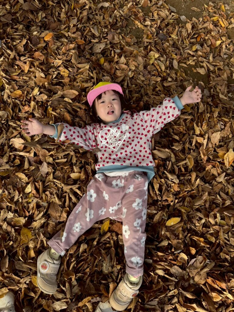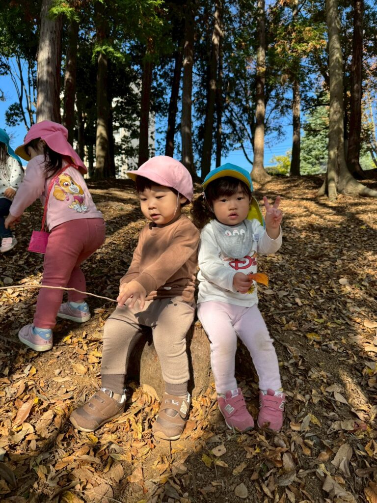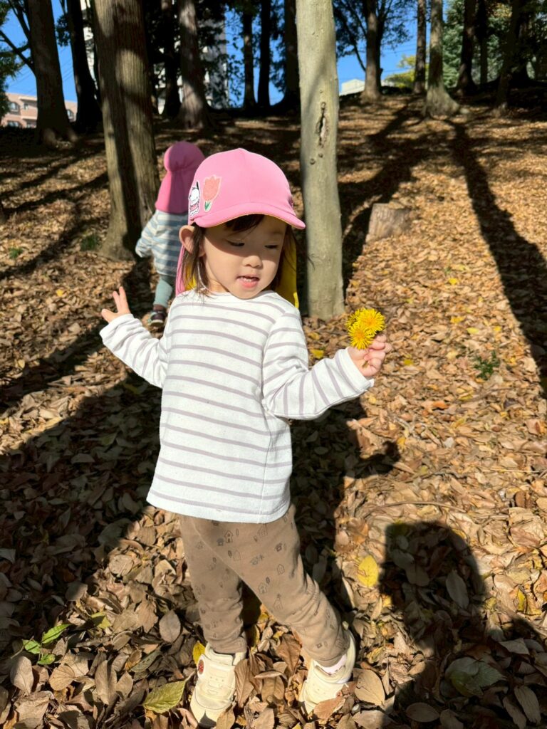 落ち葉を降る様子を見て、友だちと笑い合う姿も見られましたよ🍂