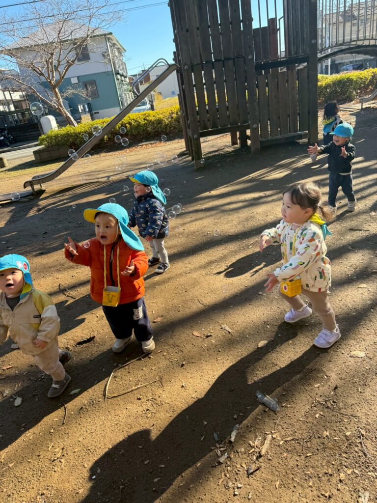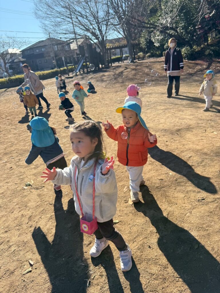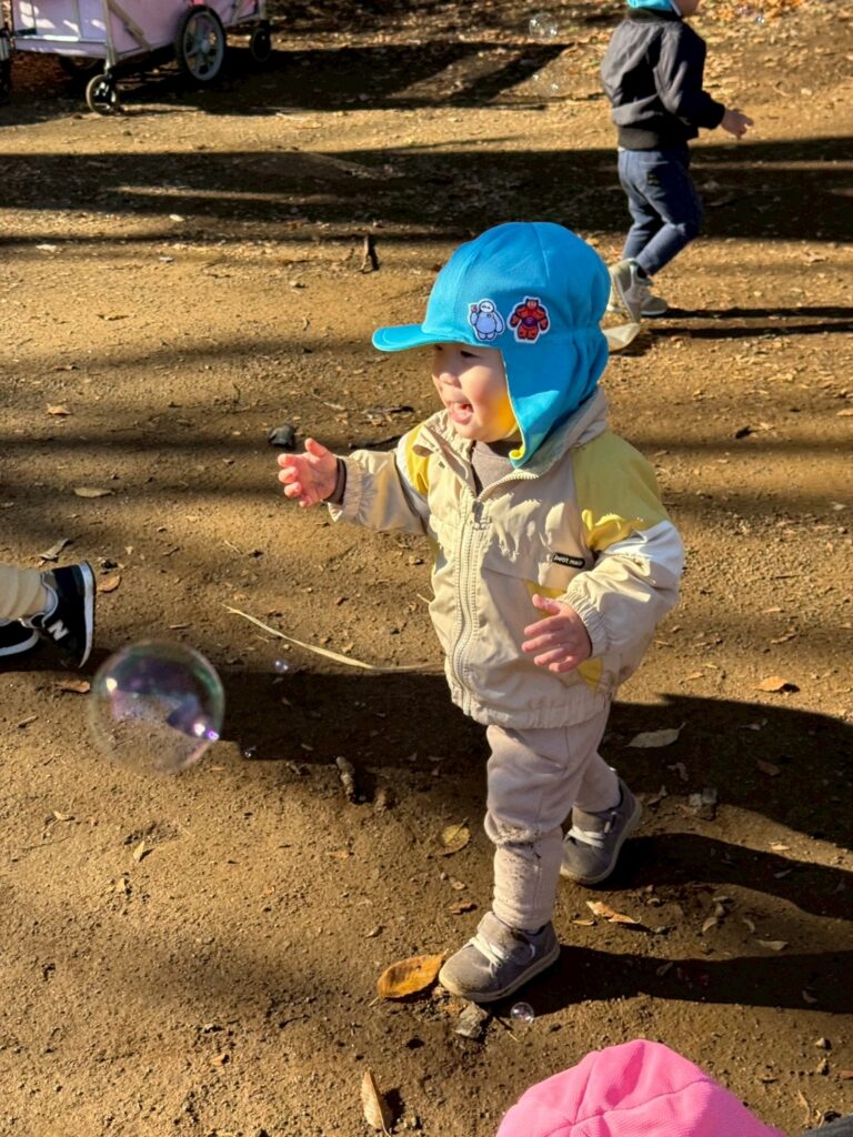 ふわふわ飛ぶシャボン玉を見つけると「まてまて~!」と、