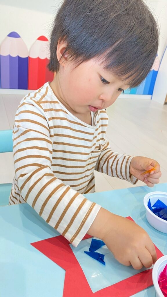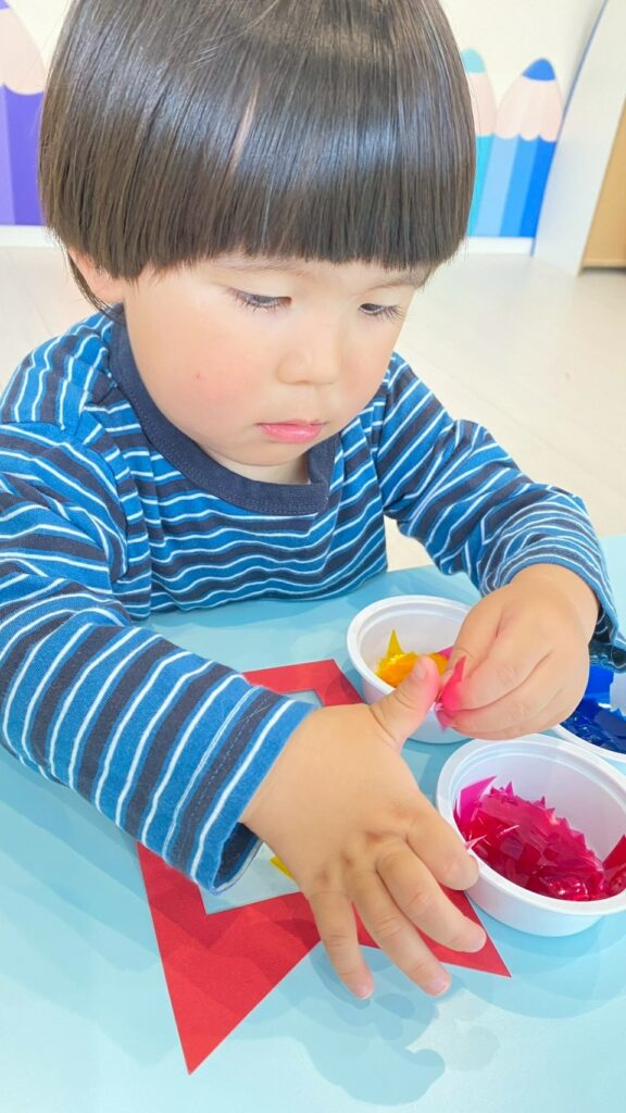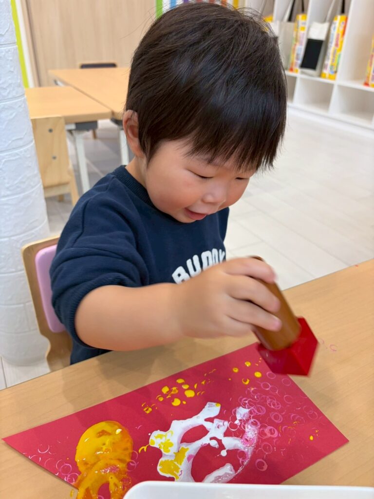 製作🎏 4月 28, 2026 最終更新日時 : 4月 28, 2026 web_operator こんにちは!RuRi八千代中央保育園です🎶 先週は5月のこいのぼり製作を行いました🎏 絵の具と色々な素材のスタンプを使って 鱗を描いたり、 セロファンを貼ってカラフルな鱗を作ったりと、 楽しんで行う姿が見られました✨
